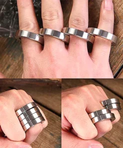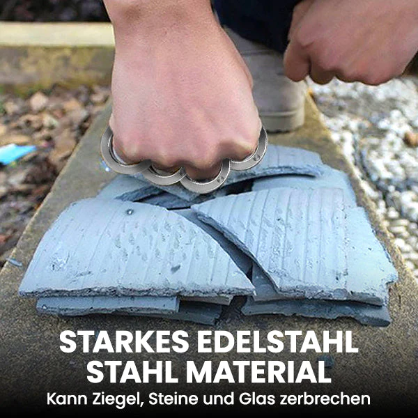 Der QuickFist RotaKnuckles-Faltring ist aus hochwertigem Edelstahl gefertigt und bietet strapazierfähige Haltbarkeit und lang anhaltenden Gebrauch. Die Edelstahlkonstruktion ermöglicht es, ihn zu falten und an den Fingern zu tragen, und mit einem einzigen Schlag kann er Ziegel und Steine durchbrechen.