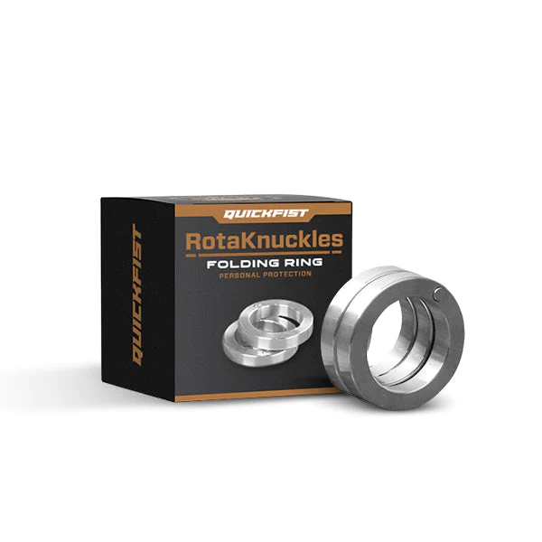 Der QuickFist RotaKnuckles-Faltring bietet mehrere Trageoptionen, sodass Sie die bequemste und effektivste Art wählen können , ihn zu tragen. Durchbrechen Sie die Sicherheitskontrollen mit einem Ein-Finger-Ring oder nutzen Sie die maximale Abdeckung Ihrer Finger für eine beeindruckende Selbstverteidigungsoption. Haben Sie immer die Gewissheit, vorbereitet und sicher zu sein.