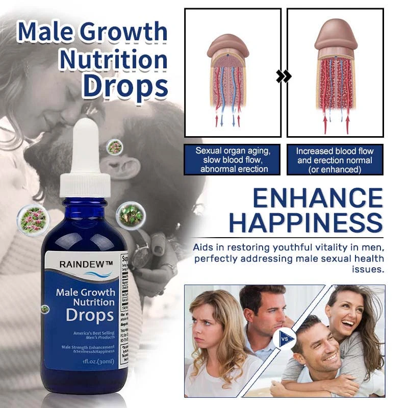 The potent formula of Raindew™ Male Growth Nutrition Drops for Men contains over a dozen refined herbal extracts, essential vitamins, and minerals, making it a natural aphrodisiac. With this powerful formula, Raindew™ Male Growth Nutrition Drops for Men can rapidly increase blood flow, enhance hardness and length, a state that can be sustained for 4-5 hours, which is challenging for typical medications to achieve. The advantage of Raindew™Drops lies in its ability to restore the regenerative capacity of the testicles through long-term use, achieving a rejuvenating effect.