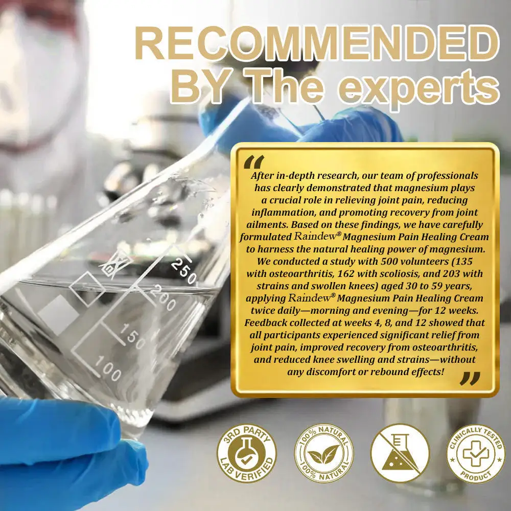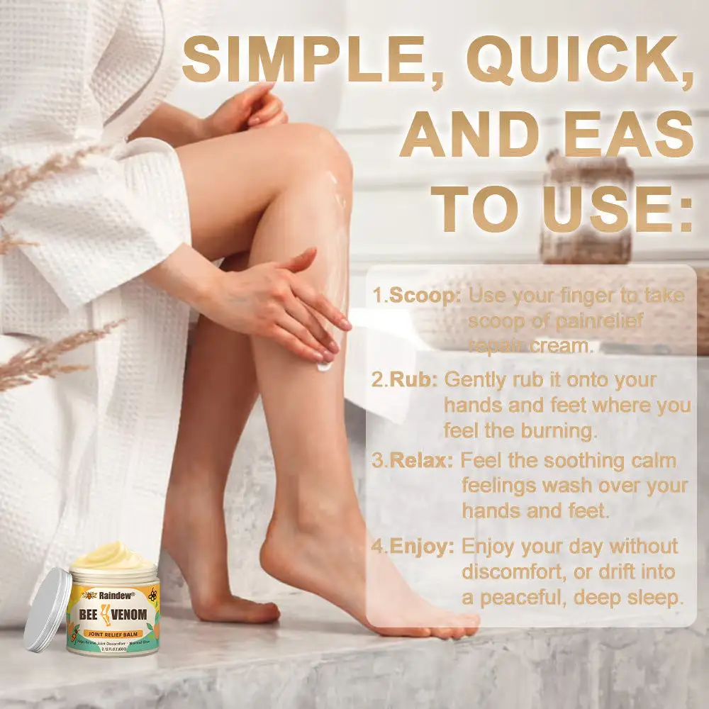 Then our Raindew® BEE VENOM JOINT ELIEF BALM is perfect for you! We have worked closely with top experts in pain management and skin repair to develop a revolutionary product that harnesses the powerful pain-relieving and healing abilities of Magnesium. Raindew® BEE VENOM JOINT ELIEF BALM the perfect booster to help you combat various pains and discomforts, allowing you to live a pain-free, healthy life and enjoy the comfort and vitality of every day.