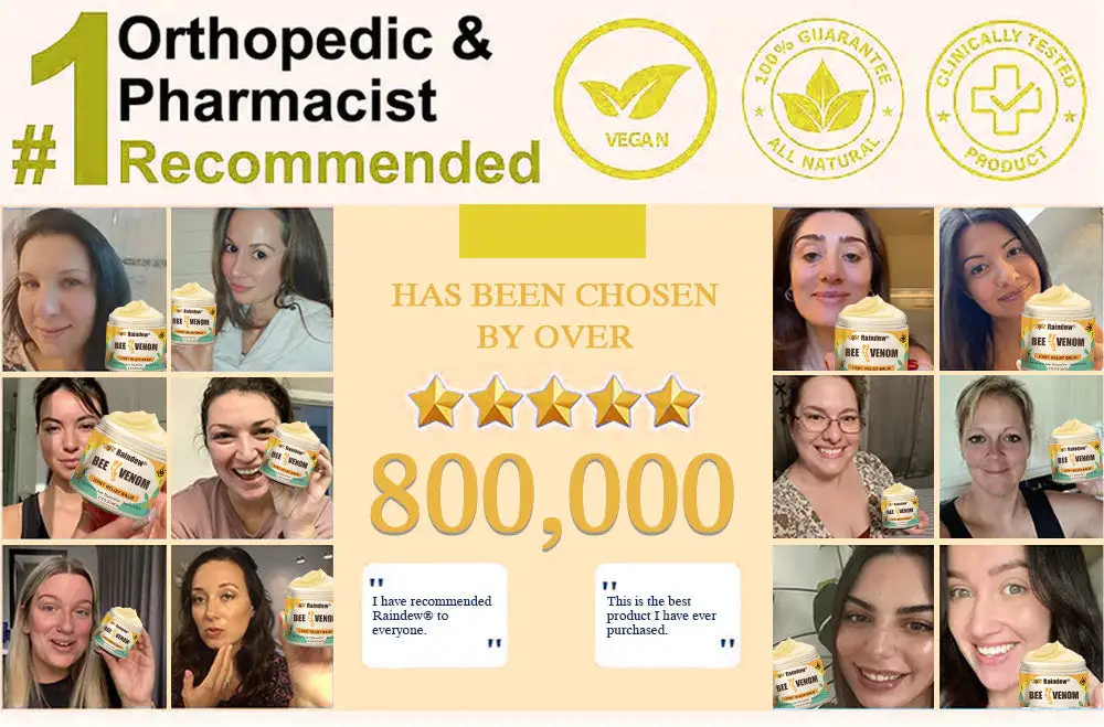 “As an orthopedic surgeon, I endorse Raindew® BEE VENOM JOINT ELIEF BALM for individuals suffering from joint and bone conditions such as osteoarthritis, rheumatoid arthritis, and other inflammatory disorders. This cream contains active ingredients like magnesium, glucosamine, and chondroitin, which work to alleviate inflammation, nourish joints, and enhance mobility. It also aids in rebuilding and restoring cartilage and bone tissue, alleviating pain and stiffness while eliminating harmful crystals that can accumulate in joints, thereby improving overall joint function.”