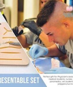 The kit has everything you’ll need to start suturing immediately, including, realistic fake skin with 14 wounds, 5 high-grade mirror finish stainless steel suturing instruments and a unique all-in-one suture kit case!