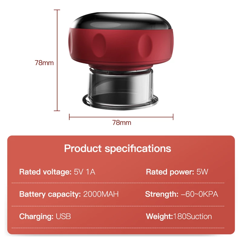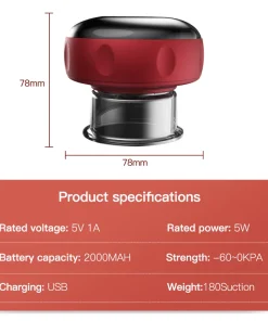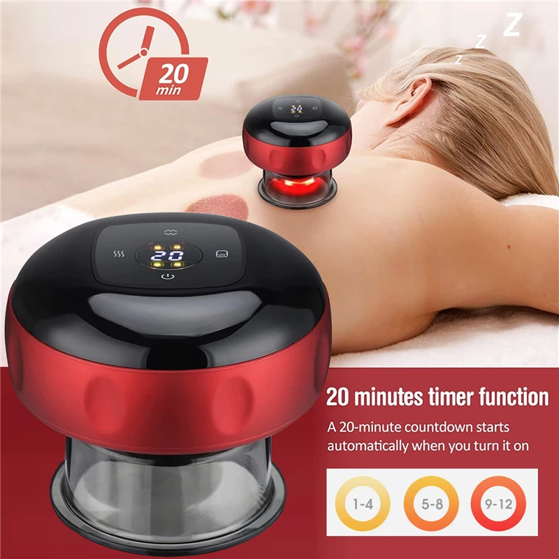 Red Light Therapy Cupping Massager for Pain Relief, Electric Cupping Massager Rechargeable Scraping and Cupping Therapy Red Light Heating Vibration Pressotherapy Pain Relief Back has the following product features: