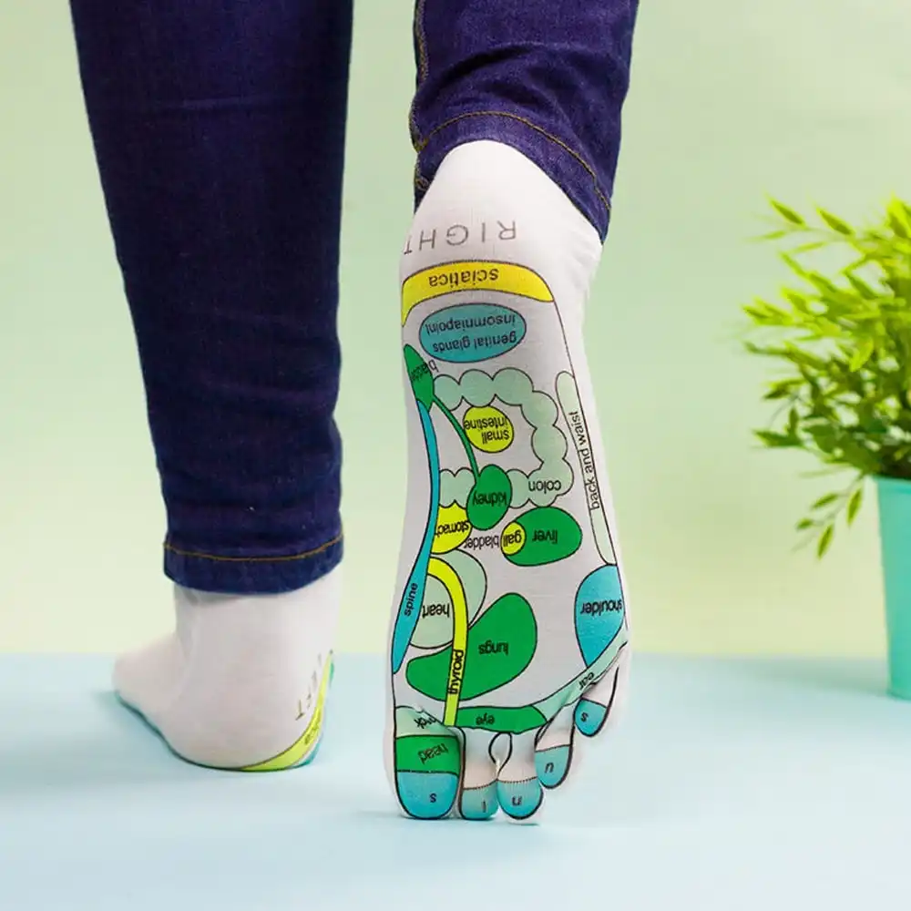 But pressing the same reflex points the video instructs doesn’t seem to do anything for you, does it? This is because you are not pressing on the correct acupuncture point. Enter the world of reflexology socks. They exhibit clearly defined reflexology zones so you can press on them and feel the energy flowing into your specific organs and body areas.