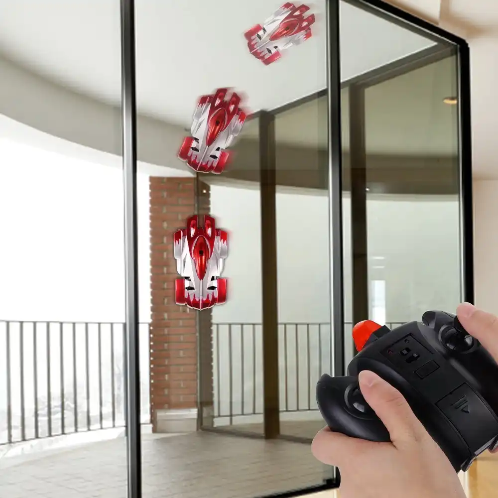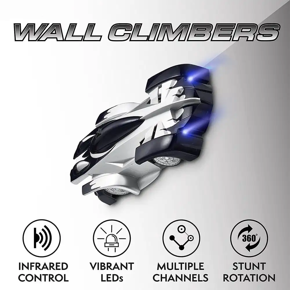 - Package includes: 1 x Wall Climbing Car, Remote Control (works on 6 AA batteries), USB Quick Charge Cable
