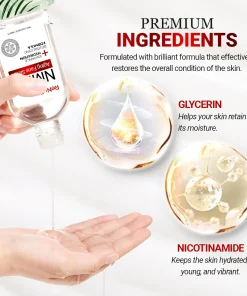 - Drop some onto your palm, gently massage, then apply the serum in a circular motion. Observe eye safety.