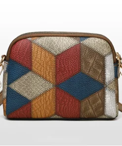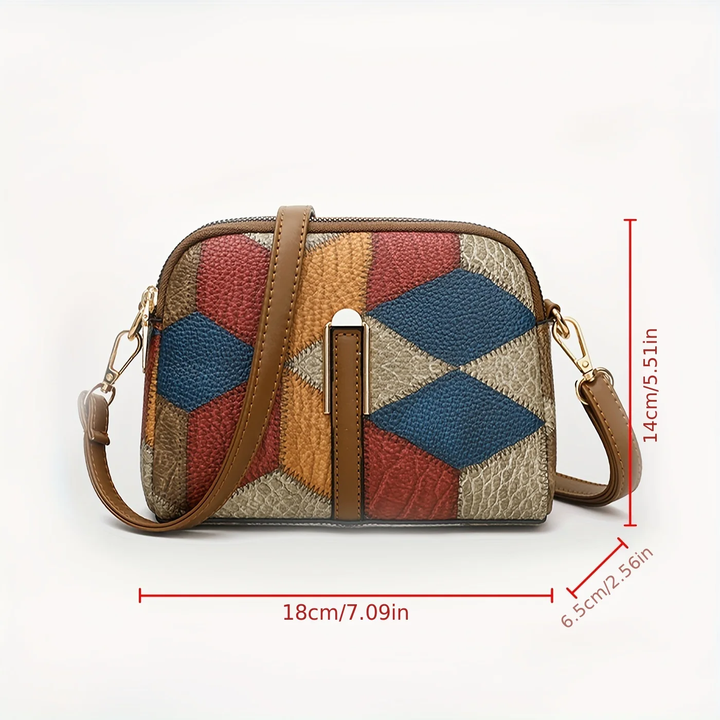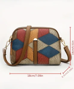 Mini Colorblock Crossbody Bag, Retro Rhombus Pattern Purse, Fashion Shoulder Bag For Women