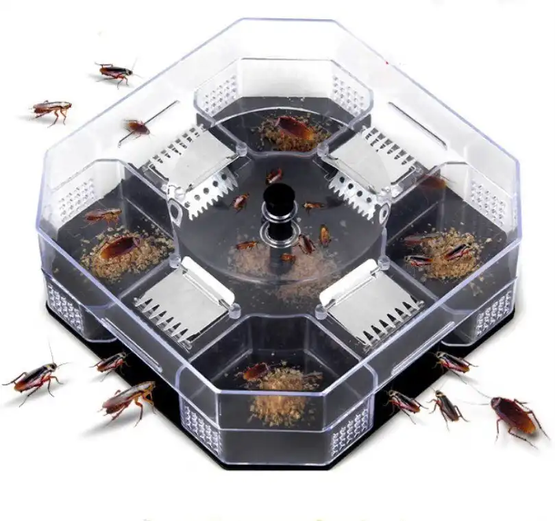 The Reusable Cockroach Trap has four large entry points to maximize the number of roaches that find their way in. Besides, it has a double stacked design with two layers of door access control.