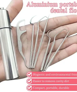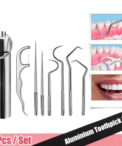 7pcs/set Aluminum Toothpick Set Tooth Flossing Reusable Toothpicks Portable Toothpick Floss Teeth Cleaner Oral Cleaning