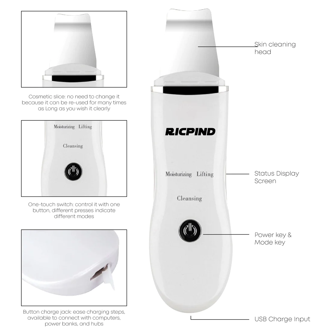 - Package: 1 x Ricpind Ultrasonic DeepCleansing Skin Scrubber
