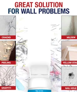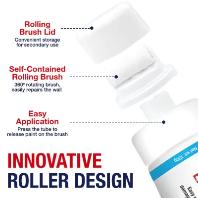 Utilize RollFixt Wall Repair Easy Roller for efficient removal of graffiti, footprints, and other stains on your walls. Simply apply the roller up and down on the desired area, lightly squeezing the bottle. Repeat as needed until your wall is fully refreshed and restored to its original appearance and wait for 5 minutes. No additional tools, such as a scraper, are required.