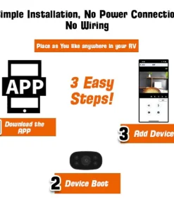 Easily hitch your RV & trailers without any assistance needed! Simply download the application on your iPhone (Apple Store) or Android (Google Play) device to view the live video remotely from the driver’s seat! With CamperTrailer’s 150° wide viewing angle, you can even set it up to monitor the inside and outside of your trailer.