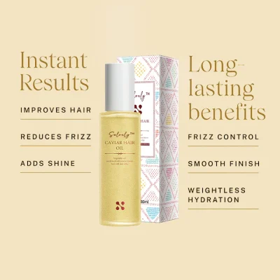 Infused with a blend of deeply conditioning ingredients like jojoba oil, honey, and olive oil extracts, the Salonly™ Frizz-Away Caviar Oil repairs breakage, delivers much-needed hydration and nourishment to dehydrated or stressed hair follicles, and even soothes irritated scalp without leaving a greasy residue behind.