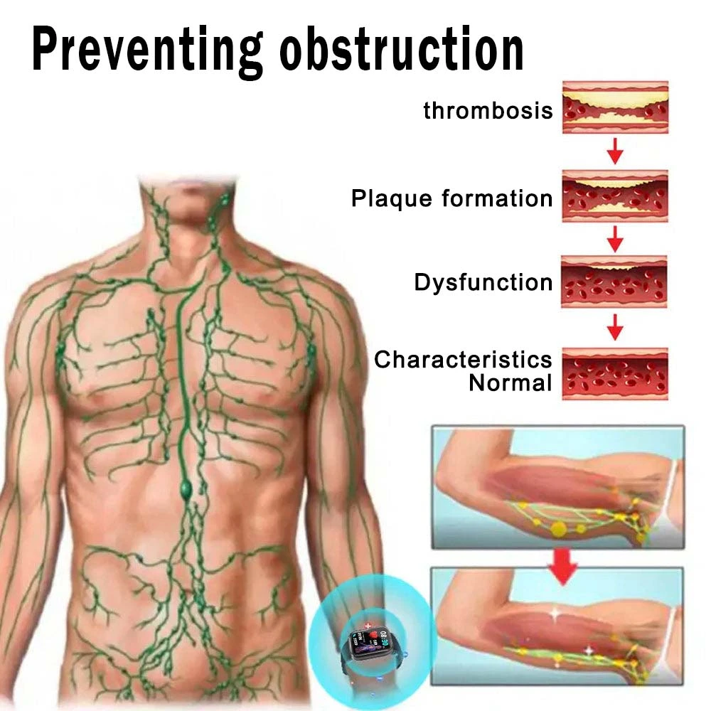 - Ultrasonic Fat Blasting: The watch uses pulsed sound waves to activate fat cells and break them down, promoting weight loss, improving skin firmness, and detoxifying the body.