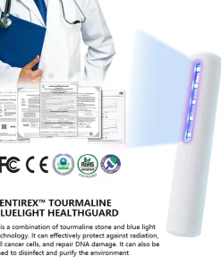 Sentirex™ combines Tourmaline gemstone and Blue Light technology to provide outstanding radiation protection and anti-cancer benefits. It relies on Blue Light Photodynamic Therapy, a vital technique in cancer treatment, known for its high-energy properties that target cancer cells effectively. The unique aspect of Sentirex™ Tourmaline BlueLight HealthGuard is its inclusion of Tourmaline gemstone, scientifically proven to release negative ions. These negative ions neutralize positive ions, mitigating radiation’s harmful effects on health.