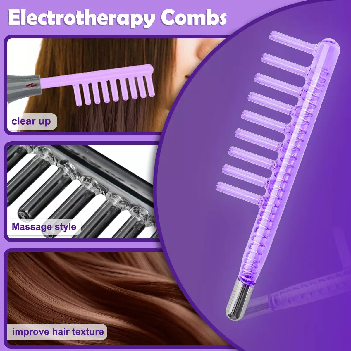 The violet light emitted from each glass electrode targets harmful bacteria, helping to maintain a clean, healthy scalp. This promotes clearer skin and reduces the chance of scalp issues like dandruff or irritation. - Microcurrent Activation: