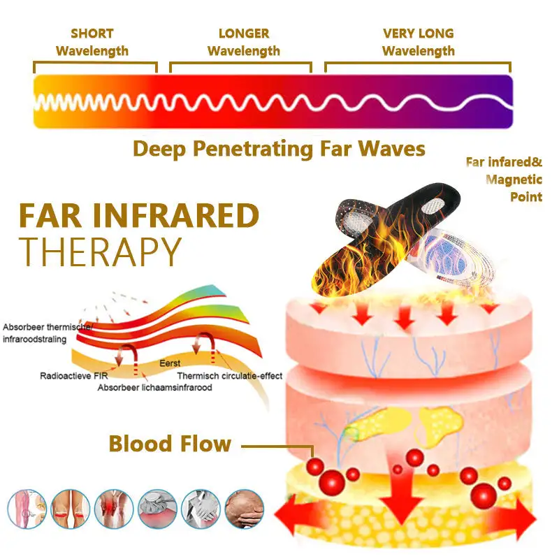 The minerals in the bottom of the Insoles release far infrared rays and negative ions, repairing the degradation of joint cartilage and enhancing the function of the body’s immune system, effectively alleviating the pain caused by arthritis. Through acupressure massage, stimulating the muscles of the feet and calves, and promoting blood circulation, it can help strengthen muscles, and improve joint flexibility, and stability.