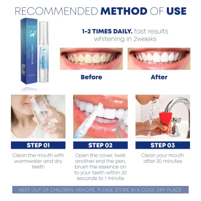 ShinySmile TeethWhitening Essence Pen is a teeth-whitening pen that’s small enough to fit in your pocket, with a convenient design that allows you to whiten your teeth anytime, anywhere!