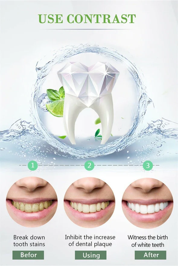 It can perfectly solve all oral problems, including dental calculus, bad breath, oral ulcers, dental caries, bleeding gums, tooth sensitivity, gingivitis, loose teeth, periodontitis, swollen gums, tooth damage, tooth loss, etc. No side effects. Made from 100% natural herbs. Suitable for everyone, including children, young people, and the elderly. Shinyteeth™ Scaling agent!