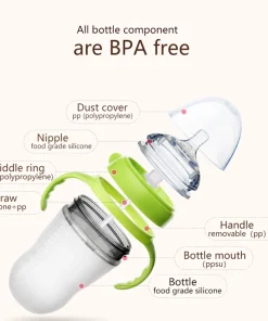 2. Imitation of breastmilk feel design, imitating the texture and shape of the mother’s breast, so that the baby can adapt to the bottle faster.