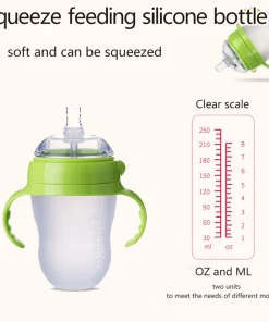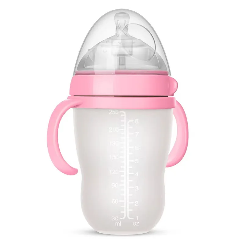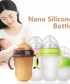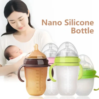 New 0-36 months Baby Nano Silver Wide Mouth Silicone Baby Bottle 240ml 150ml with Silicone Handle Imitation breast milk design