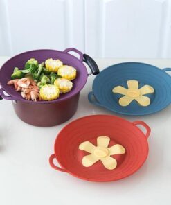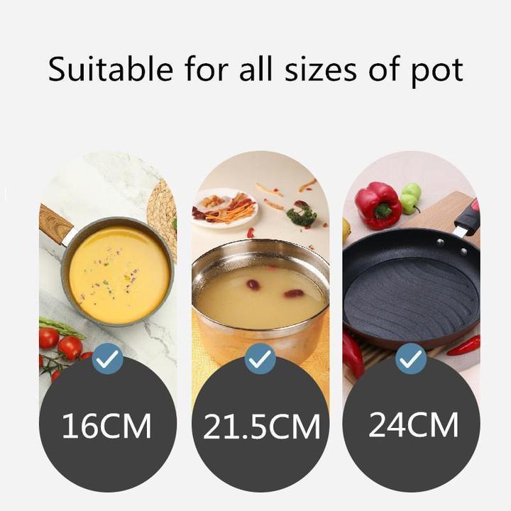 This lid features a steam-release vent and silicone handle that is easy to grip. non-stick water,not sticky oil, easy to clean. Fits to different size cooker.
