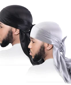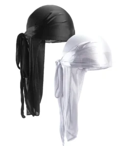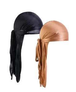 2PCS/LOT Unisex Men Women Satin Breathable Silky Durag Long Tail Doo Rag Pirate Hat Headband Turban Bandana Durag Headwear
