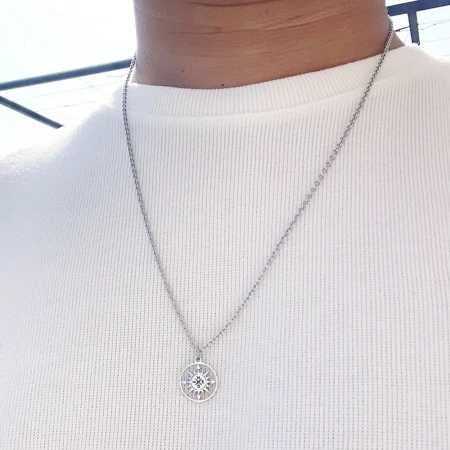 Turn your life in the right direction and never go wrong after wearing this silver compass necklace. The circular pendant, the link chain and the link between the two pieces – everything is so simple and stylish.