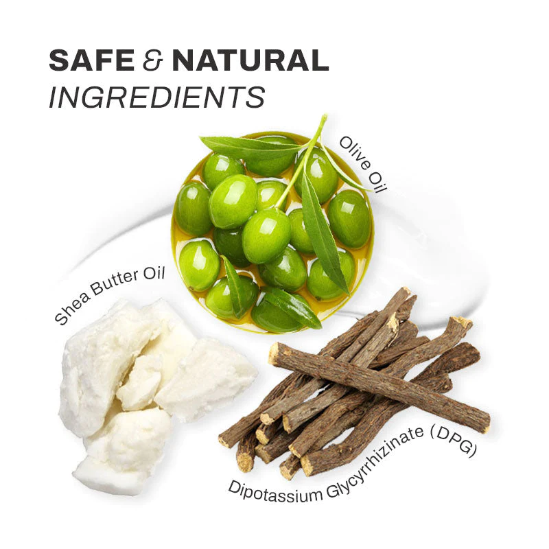 - Ingredients: Olive Oil, Shea butter oil, Dipotassium Glycyrrhizinate (DPG)