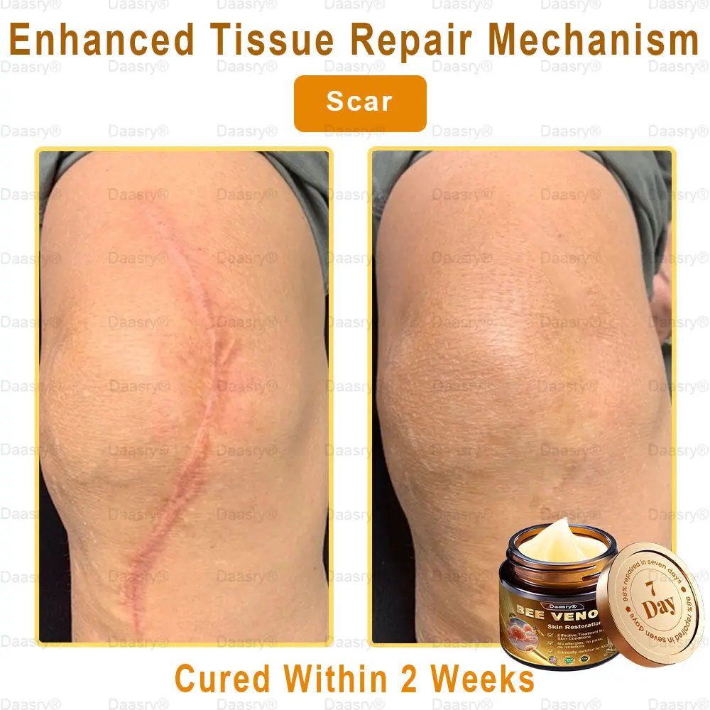 Daasry® Bee Venom Skin Treatment Cream uses high-quality ingredients to maximize efficacy by locking in moisture, stimulating collagen production, smoothing wrinkles, and repairing damage.