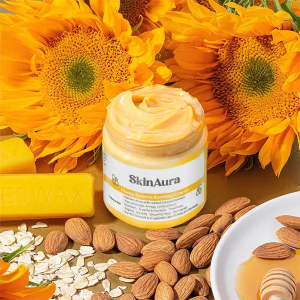 A: SkinAura combines natural honey and nourishing ingredients known for their anti-inflammatory and moisturizing properties. It helps soothe irritated skin, reduce redness, and restore your skin’s natural barrier.
