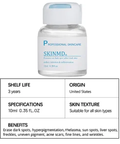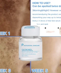 “SKINDM® Dark Spot And Acne Treatment Unisex Liquid is the product delivering the safest and fastest results of eliminating dark spots and acne outside of plastic surgery like laser treatment. We have found that it has helped 95% of users to successfully eliminate dark spots and acne through long-term follow-up records. It works to inhibit the formation of melanin and bacterial growth, and fade already-formed spots and acne scarring.