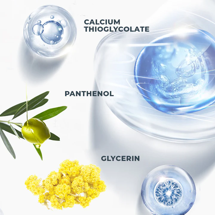 - Core ingredients: Calcium thioglycolate, Stearyl alcohol, Niacinamide, Glycerin, Italian helichrysum, Bisabolol, Yeast extract, Saffron extract, Panthenol