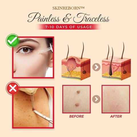 Our SkinReborn Spot Clearing Serum is clinically proven to remove all spots, moles, warts, skin tags, freckles and other imperfections on both the face and body. Formulated with natural herbal ingredients, it penetrates deep under the skin to safely flatten moles and blemishes without leaving any marks or irritation on the skin.