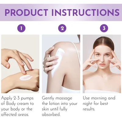 - Apply 2-3 pumps of Body cream to your body or the affected areas.