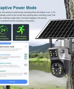 * When a human moves in front of the cctv camera, this solar camera will pan or tilt following the movement. This security camera never let you miss any important moments.