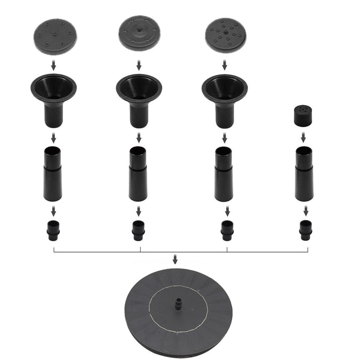 This was smaller than i thought it would be but i enjoy it! I put it in our bird bath which is only 2 or 3 inches deep and it worked fine. Started working as soon as i went out into direct sunlight. I haven’t tried all the sprayer options yet but the one i tried today sprayed about 9 inches high. The spray didnt fan out like i hoped but one of the other options might do that. This has a ring of foam on the underside so it floats around instead of sitting in one spot. Overall i like this product and it adds a little movement to the area. Hopefully it will attract the birds for a drink.