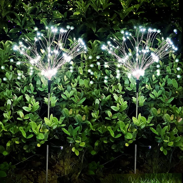- Package: 2 Pcs – 90 LEDs each x Solar Sparkler Lights For Garden Paths & Walkways