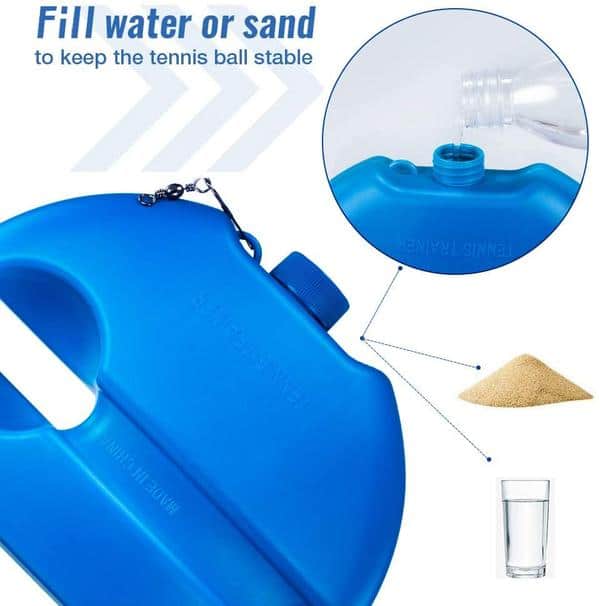 The tennis trainer’s base has a valve for putting sand or water into it to increase the weight so as to provide stable support for training, help to perfect skills of tennis.