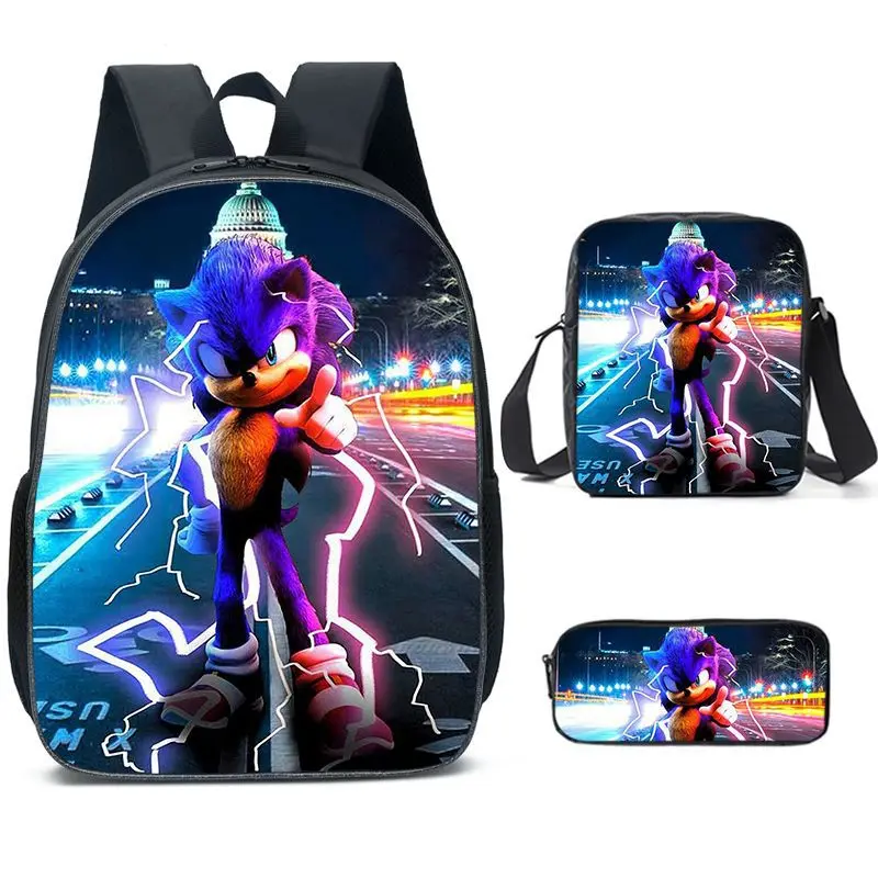 Sonic Backpack Primary and Middle School Students Schoolbag Boys Girls Anime Cartoon School Bag Mochila Zipper Shoulders
