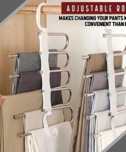 - Space-Saving Design: The adjustable storage rack can be hung steadily with two hooks or it can be hung vertically, it can hold up to 5 pairs of pants at one time and it will make your closet tidier.