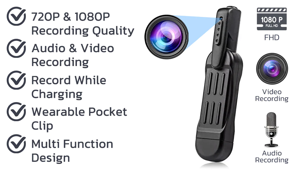 The lavalier camera has a high-definition sensor capable of discreet recordings at 1080p at 30 frames per second so you can capture every detail. It can be helpful in meetings, negotiations or office and home security.