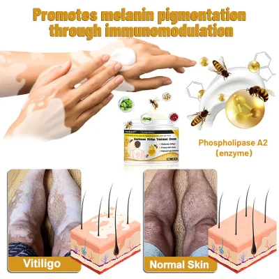 It indicates that Spzv™ BeeVenom Vitiligo Treatment Cream has special abilities to reduce the immunological response in vitiligo patches. By using the Shinyme Vitiligo Skin Repair Cream to the vitilgo skin, you can reverse skin depigmentation and restore any keratinocytes and melanocytes that have been damaged.