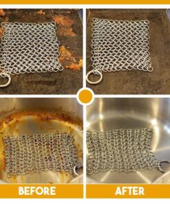 This cast iron skillet cleaner is handmade rings by Premium 316L Stainless steel, It is ideal for cleaning all your cast iron cookware, such as cast iron pans , pre seasoned cast iron , skillets, dutch ovens , camp chef griddles , waffle irons and so on . Boasting unmatched durability and built to last as long as your cast iron products. Each chainmail ring is designed with the highest quality food grade stainless steel in the industry to be smooth enough for pans.