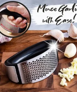 With a gentle back and forth rocking motion, the new garlic press easily crush or chop garlic, ginger and onion in half the time! Garlic collects on the surface of the rocking garlic press and there are no extra dishes to clean. This Garlic Press is very sturdy and durable and corrosion resistant.