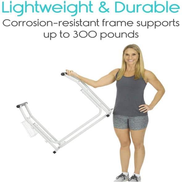 The freestanding toilet rail is easy to assemble: no tools required. Rail handles are padded with soft foam for pain-free support. The foam padding creates a comfortable, non-slip surface for a secure grip when sitting or standing.
