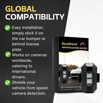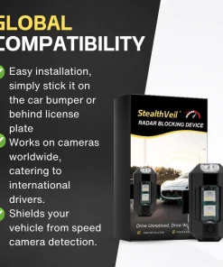 - StealthVeil™ Radar Blocking Device can be conveniently affixed to the car bumper (in a discreet location) or positioned behind the car license plate.