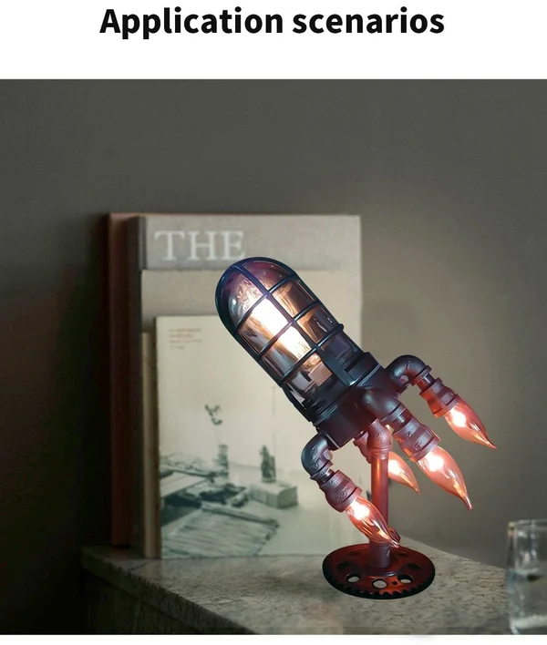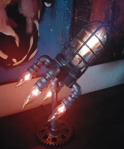 Each steampunk rocket lamp is carefully crafted and handmade. Perfect for decorative and special occasions in a child’s or nursery.