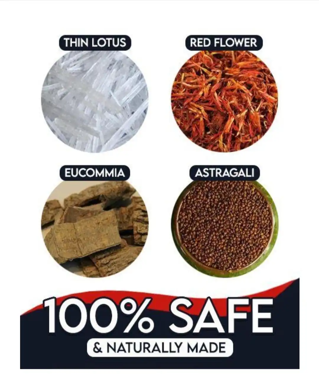 Ingredients: Astragali, Eucommia Bark, Thin Lotus, Red Flower