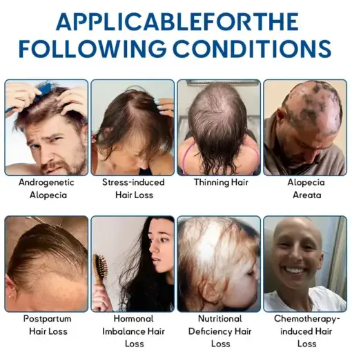 Clinically proven in a large-scale study involving over 80,000 participants, 96% of users experienced visible improvements—reduced hair thinning, stimulated new hair growth, and enhanced hair strength. This breakthrough innovation offers a safe, effective solution for a wide range of hair loss conditions.